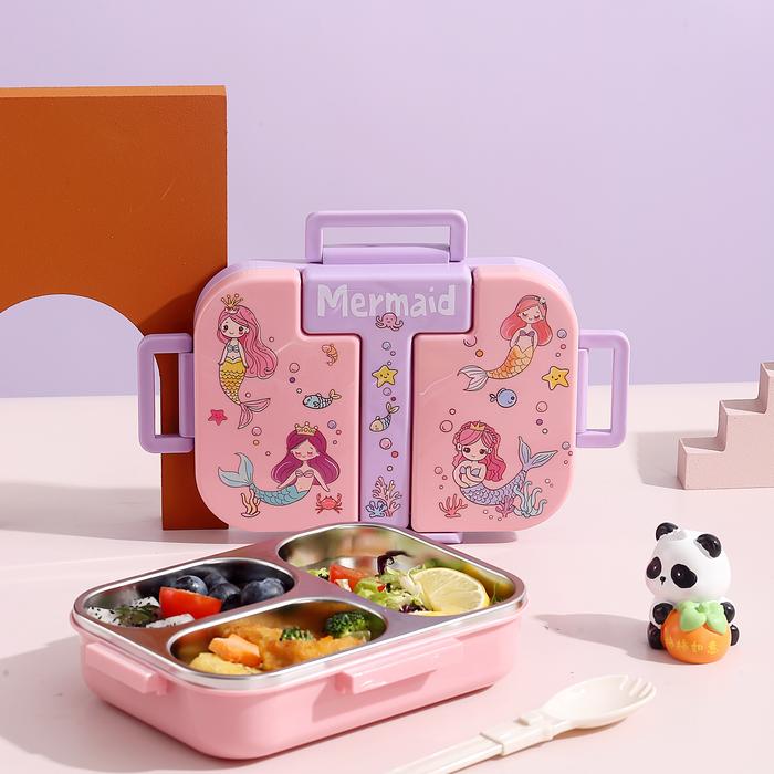LENOBI - Lunch Box Anak 3 Sekat Lucu + Sendok - Tempat Bekal Sekolah Anti Bocor - GREEN ENGINEERING
