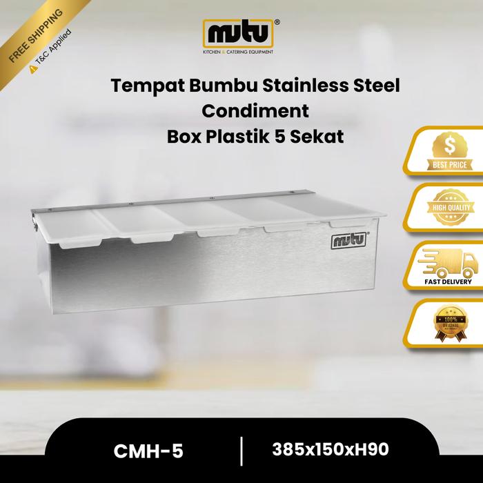 MUTU Seasoning Box Tempat Bumbu Condiment Holder Stainless 5 Ruang Tutup Transparan Plastik CMH5