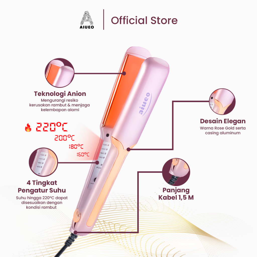 Catokan Aiueo Rosi 459 3In1 220°C Nano Silver Hair Straightener Curly Blow Pink