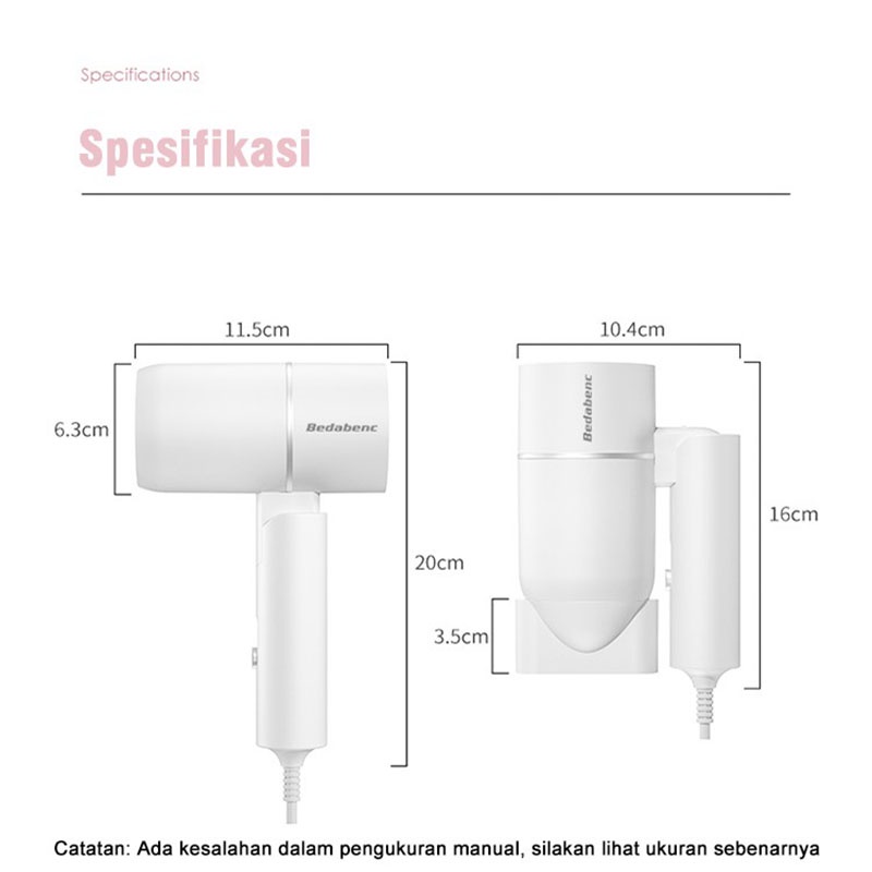 Hair Dryer Mini Ion Negatif Dengan Pengatur Suhu Pengering Rambut Ringkas