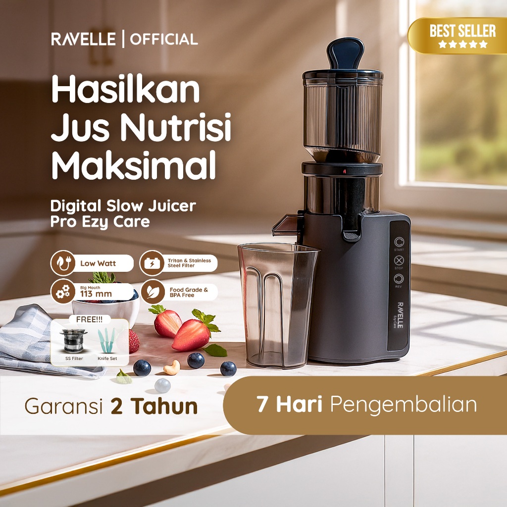 Juicer Ravelle Premium Digital Slow Pro Ezy Care Extra Big Mouth Easy Clean Low Watt