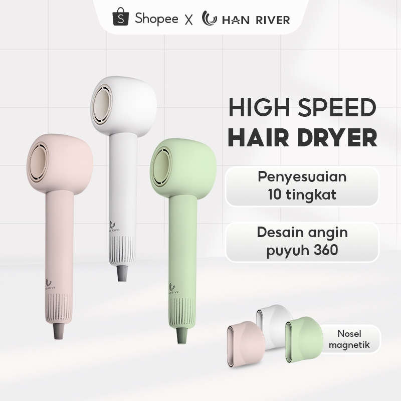 Hair Dryer Han River High Speed 130000 Rpm 10 Mode Portable Pengering Rambut Cepat
