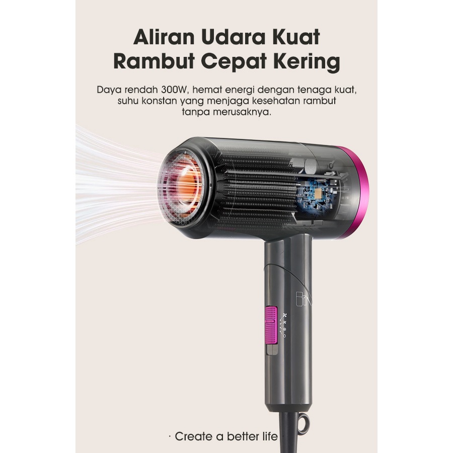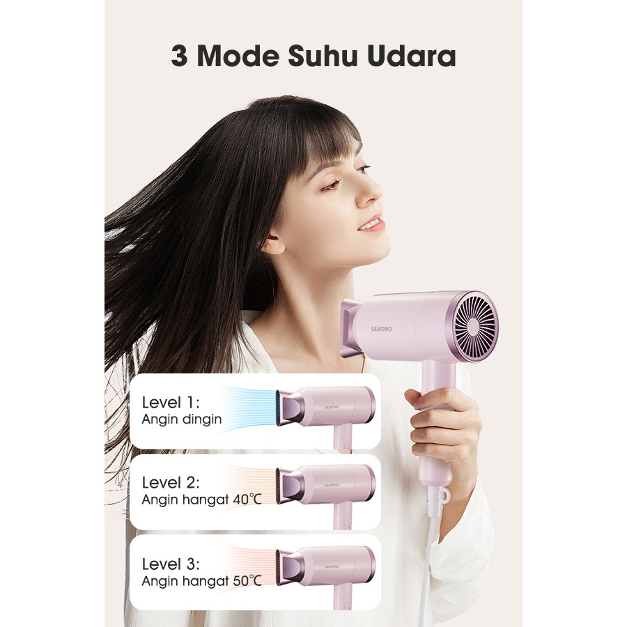Hair Dryer Samono Swhd03 3 Kecepatan Angin Dingin Hangat Blue Light Ion Negatif 300 Watt Bisa Dilipat