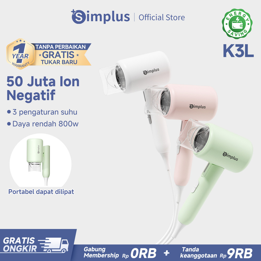 Hair Dryer Simplus 800W Foldable Perawatan Ion Negatif 3 Tingkat Suhu
