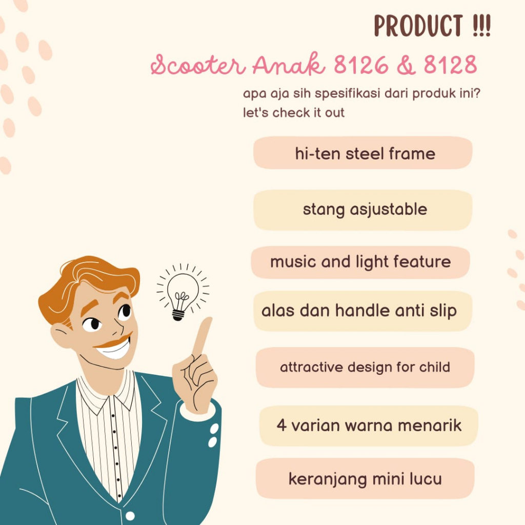 TERLARIS Scooter Otoped Anak Exotic 8126 Skuter 8128 Musik dan Lampu Mainan Kendaraan Anak TERMURAH