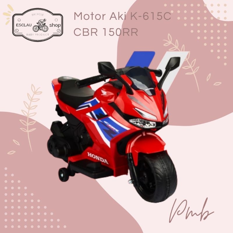 TERLARIS Motor Aki Pmb Vortec Mainan Kendaraan Anak Honda Cbr Ninja 150rr k615c/M09 Cas Charger