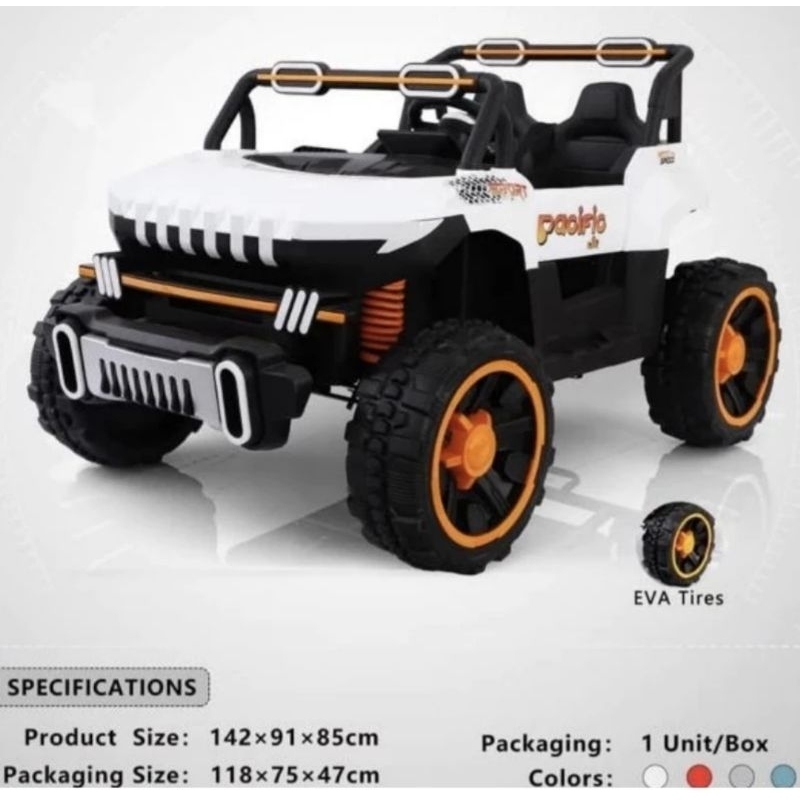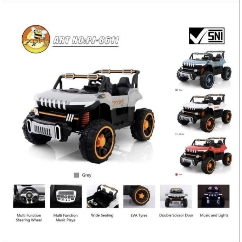 TERLARIS MAINAN ANAK MOBIL AKI JEEP SPORT HUMMER 4 WD PJ KYZ 8611 BAN KARET