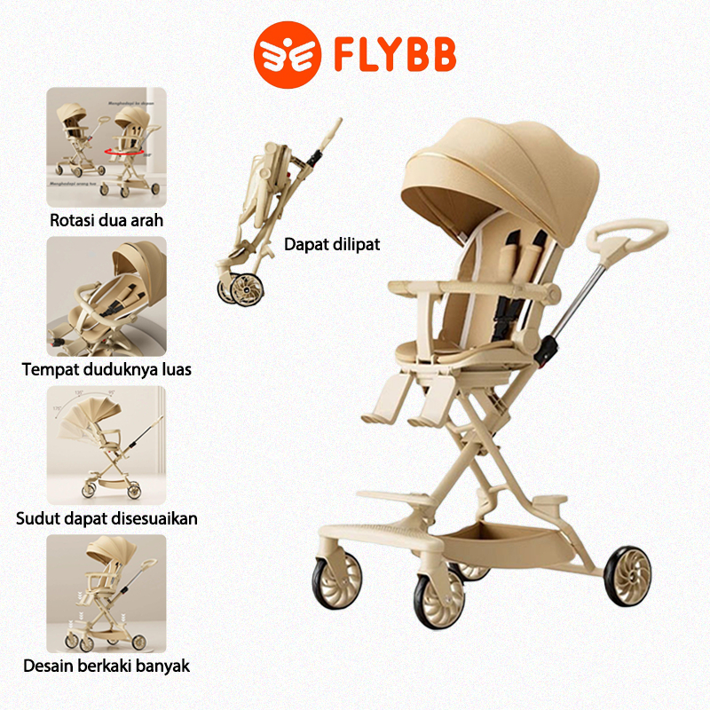TERLARIS FLYBB Stroller Bayi Lipat Travelling Duduk Dan Berbaring Kereta Dorong Bayi kursi Dua Arah