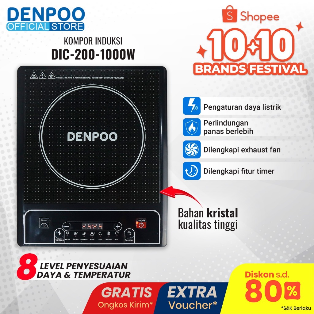 Kompor Listrik Denpoo Induksi Low Watt Dic 200-1000 Praktis Untuk Rumah Tangga