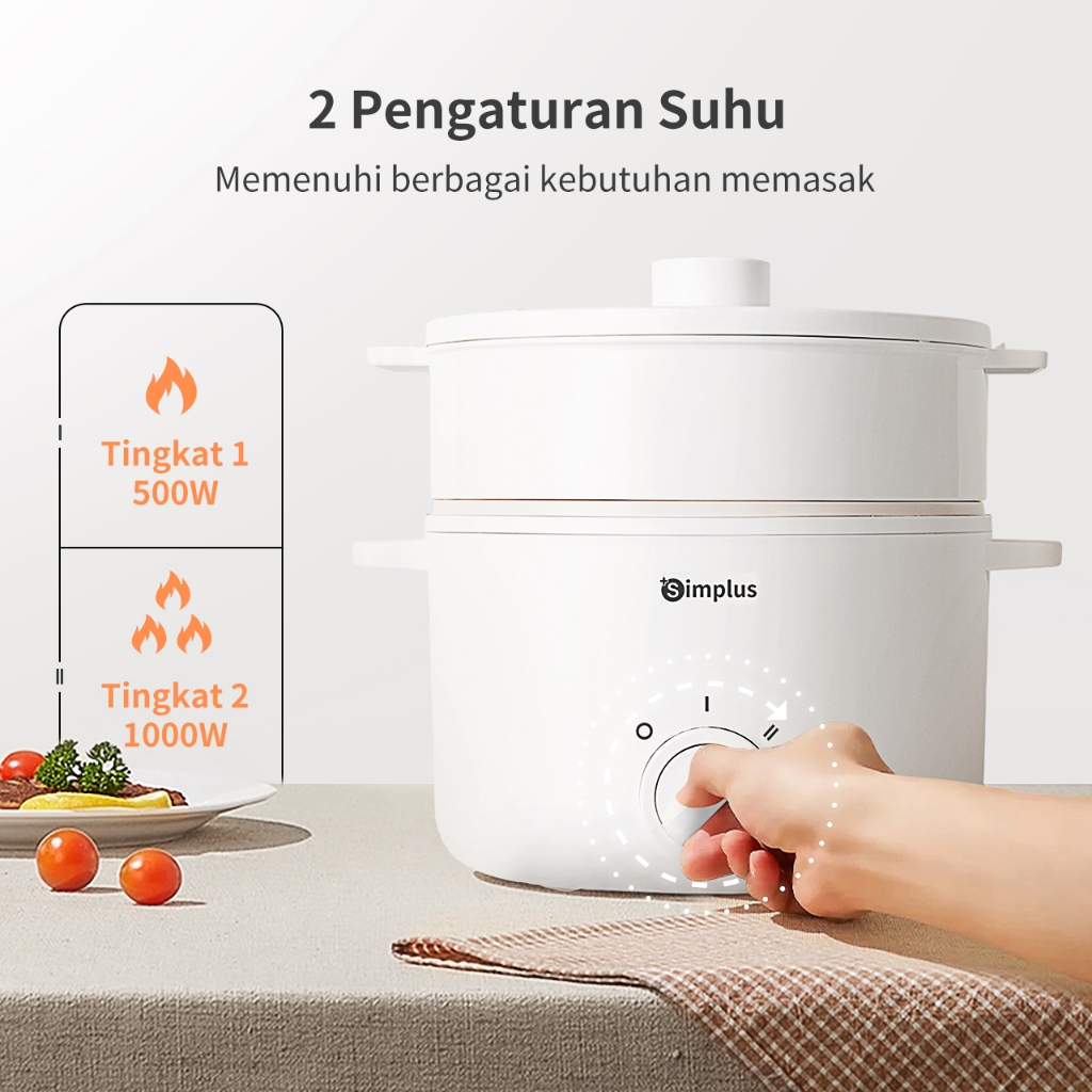 Panci Listrik Simplus Multifungsi 3L Keramik Anti Lengket 2 Tingkat Suhu Rumah Tangga