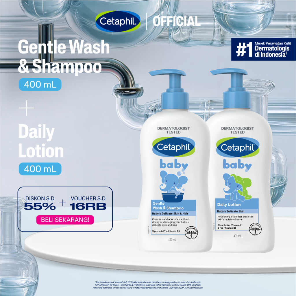 CETAPHIL Baby Gentle Wash & Shampoo 400ml + Daily Lotion 400ml Cocok Untuk Kulit Bayi Produk Asli BPOM TERLARIS