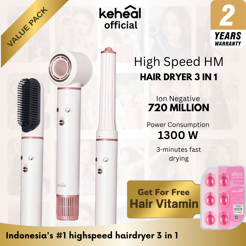 Hair Dryer Keheal 3In1 Negative Ion Anti Radiasi High-Speed Curl Straightener