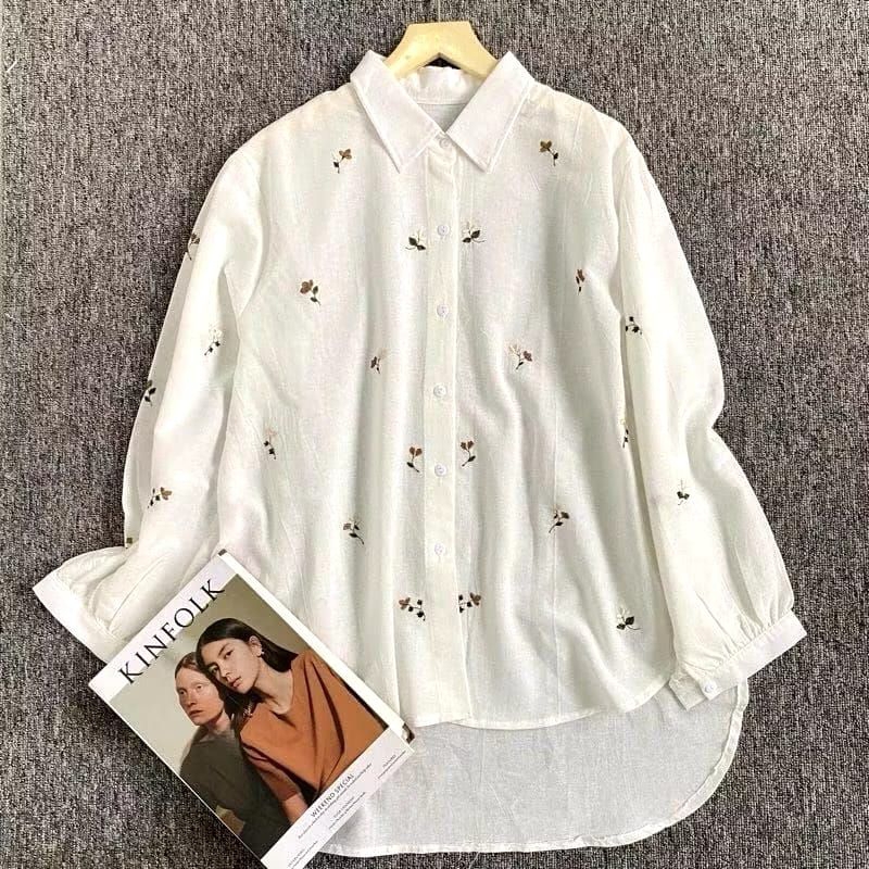 Kemeja Laura Motif Bordir Bunga Atasan Wanita Blouse Oversize Polo linen