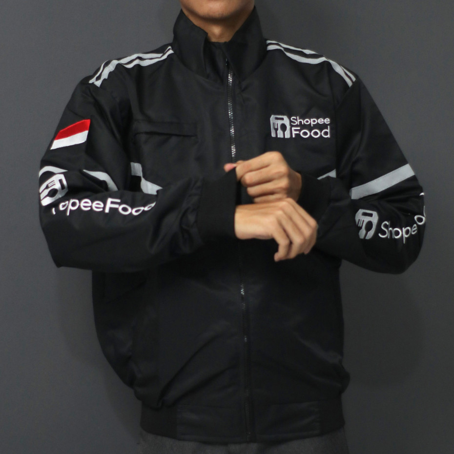 Jaket bomber hitam ojek online / jaket shp food hitam / driver ojol / jaket motor pria taslan Termurah