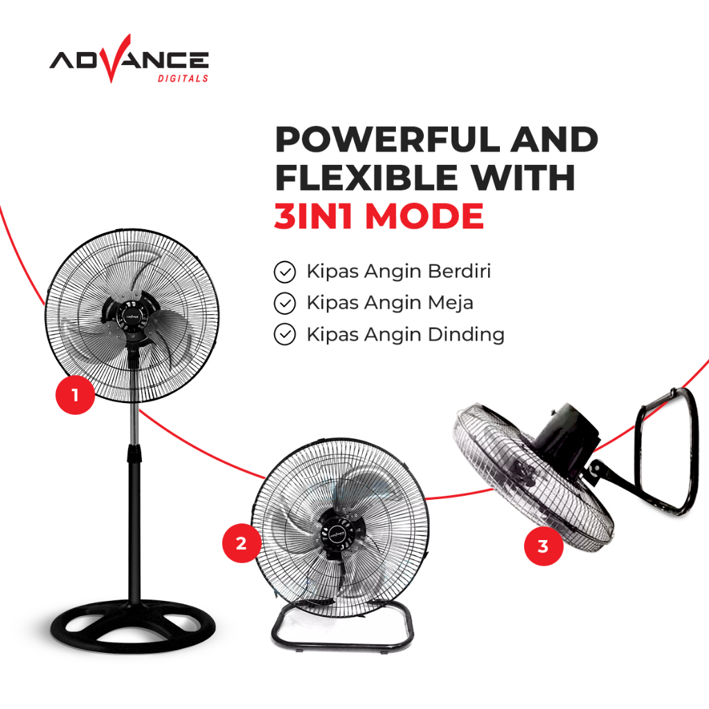 Kipas Angin Advance 3In1 Stand/Desk/Wall Tds-18 Garansi Resmi 1 Tahun Multifungsi Praktis