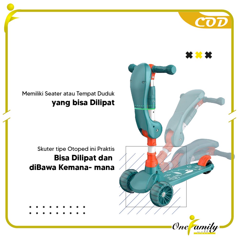 TERLARIS ONE-M290 Mainan Anak Skuter Otoped Sepeda Duduk 3 Roda 2in1 Ada Musik Lagu Lampu Scooter Anak roda nyala