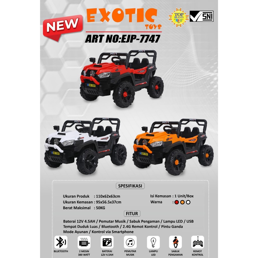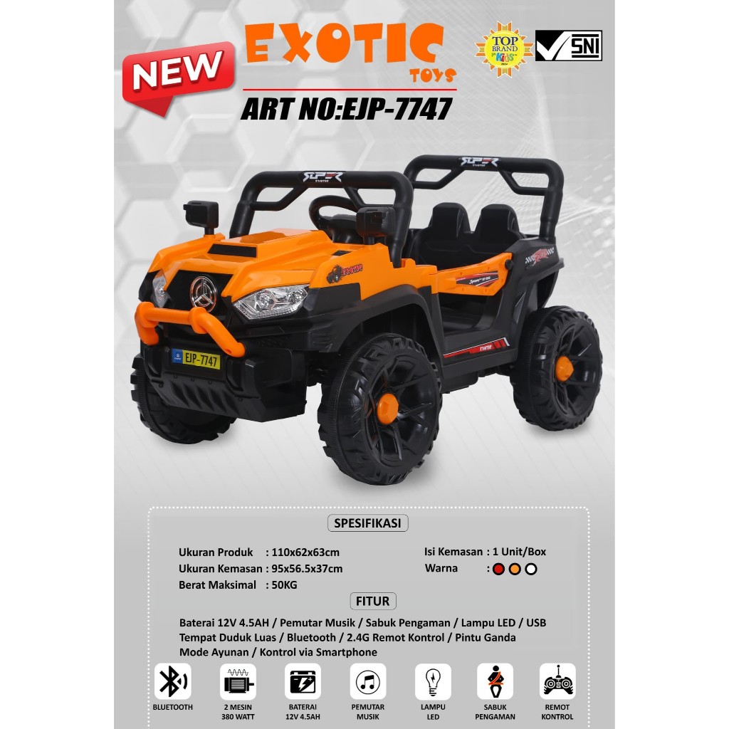 TERLARIS Mobil Aki Anak EXOTIC Jeep EJP-7747 EJP7747 Remote Remot Murah Kendaraan Mainan Mobilan Jeep