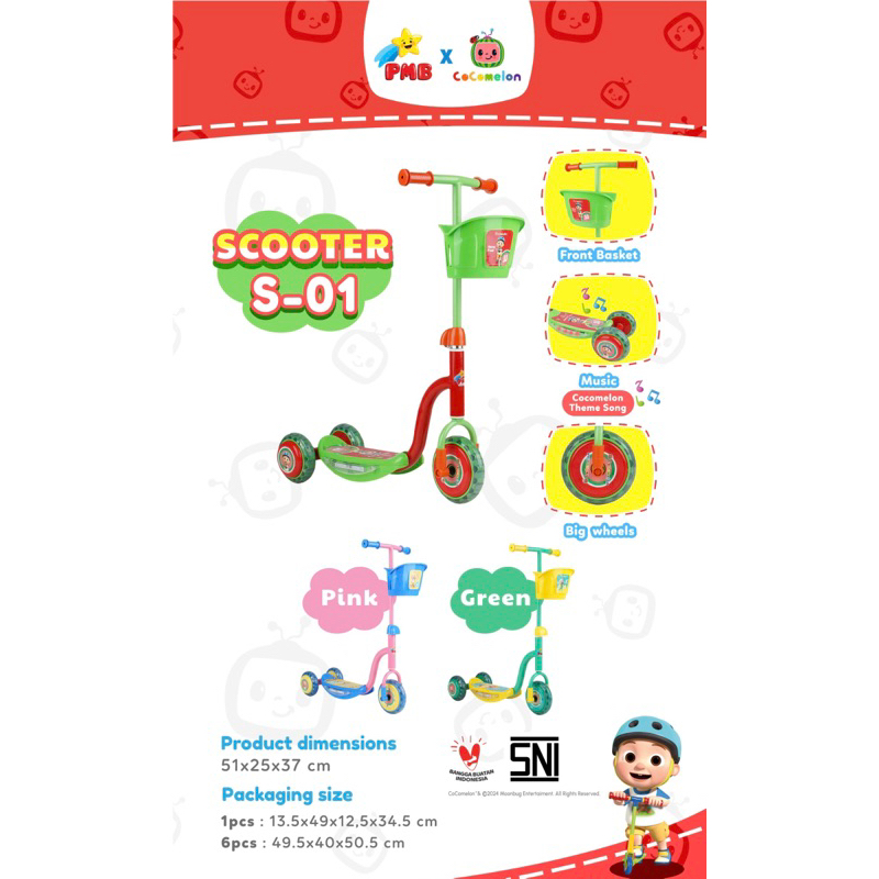 TERLARIS Scooter Anak PMB S01 S-01 Sekuter Skuter Cat Nikel Stenlis Cocomelon Coco Melon