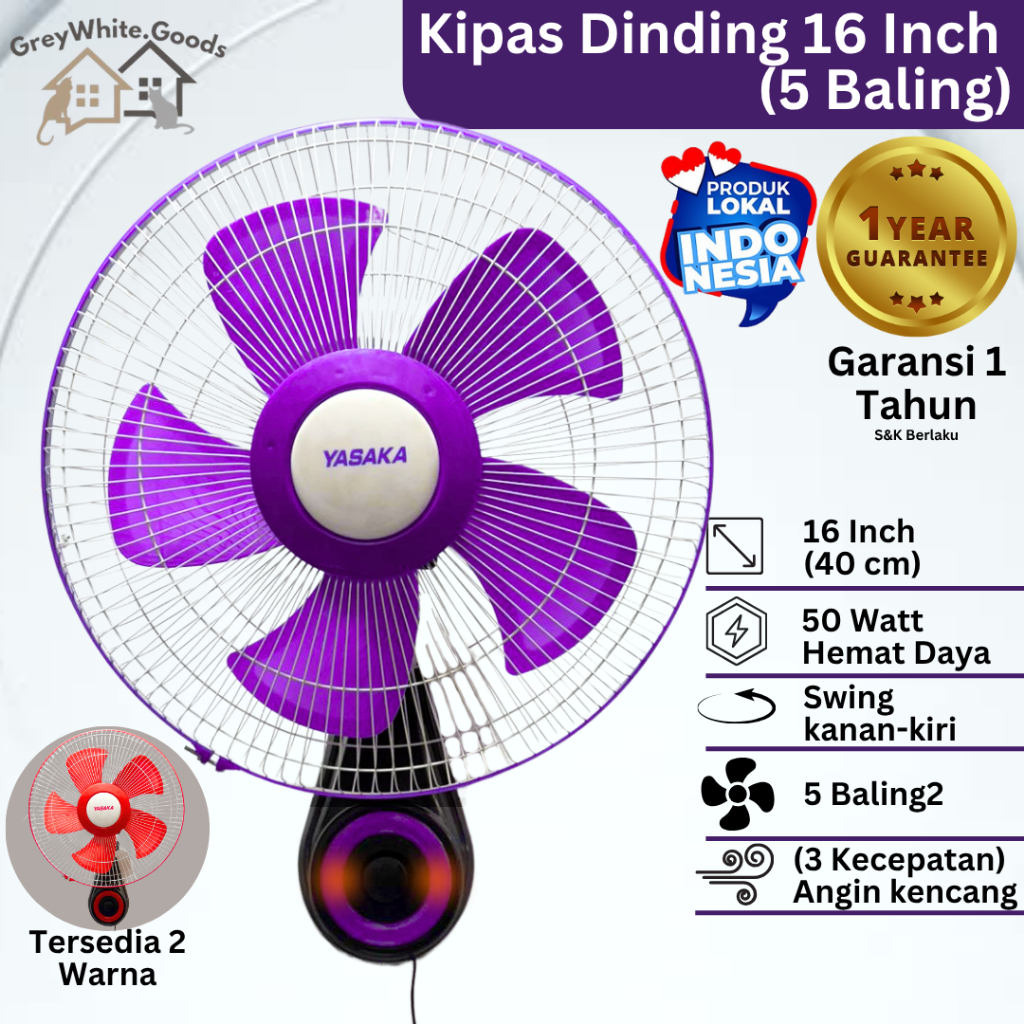 Kipas Angin Dinding Wall Fan 16 Inch Hemat Daya 5 Baling Angin Kencang