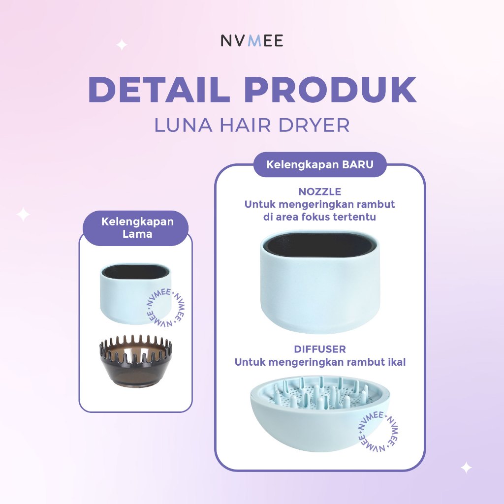 Hair Dryer Nvmee Luna Strong Wind Low Watt Praktis Dan Aman Untuk Perawatan Rambut