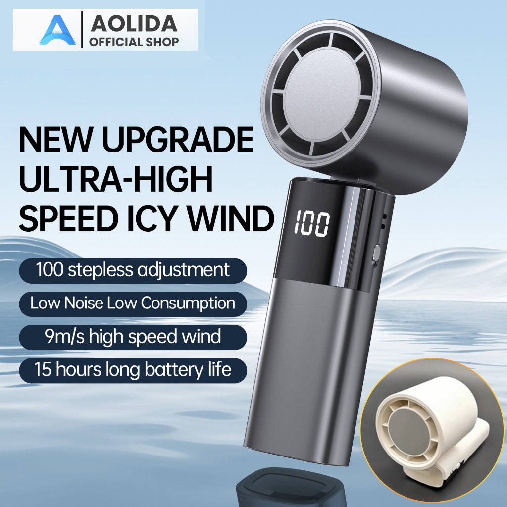 Kipas Angin Aolida 4000Mah Mini Portable High Speed 100 Gear Digital Display