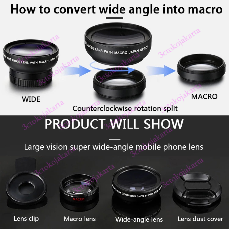 2 In 1 Lensa Super Wide Angle Lens Macro Smartphone Aksesoris Lensa Pembesar 12.5X Camera HP Dengan Klip Untuk Handphone