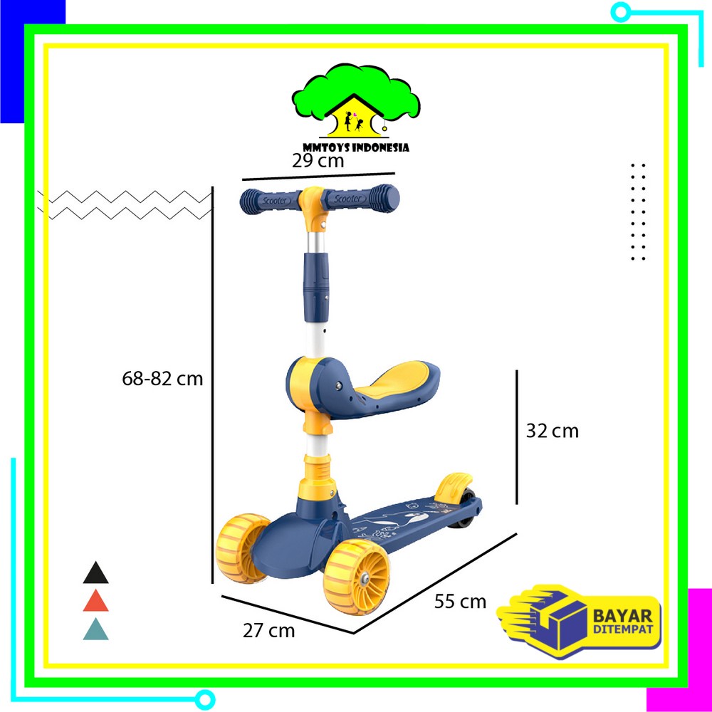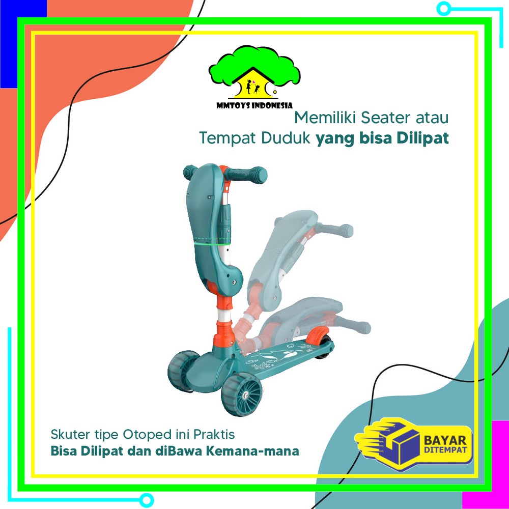 TERLARIS MI-M290 Mainan Anak Skuter Otoped Sepeda Duduk 3 Roda 2in1 Ada Musik Lagu Lampu Scooter Anak roda nyala