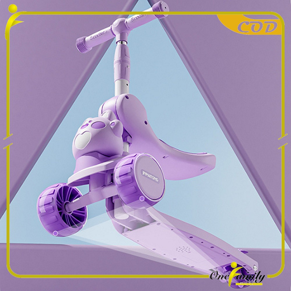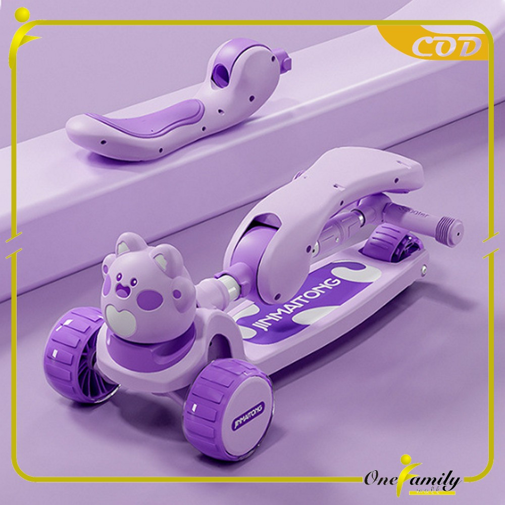TERLARIS ONE-M391 Mainan Anak Skuter Lipat 3 Roda Scooter Otoped Karakter / Sepeda Duduk 2in1 Ada Musik Lagu Lampu Scoot