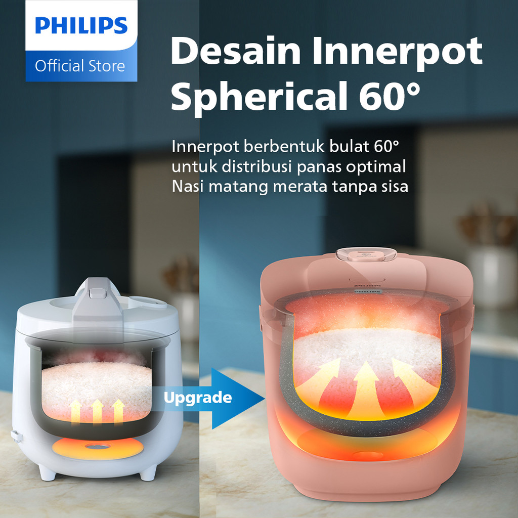 Rice Cooker Philips Digital Magicom 1.8L 3000 Digital Series Hd4716/31 Pink 16 Menu Anti Lengket
