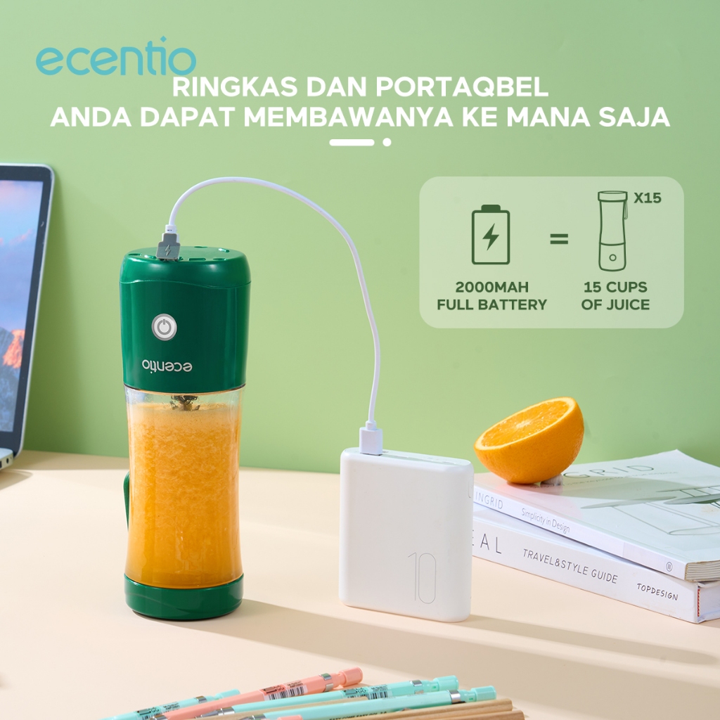 Juicer Ecentio Portable Mini 6 Pisau Food Grade 380Ml Blender Mpasi