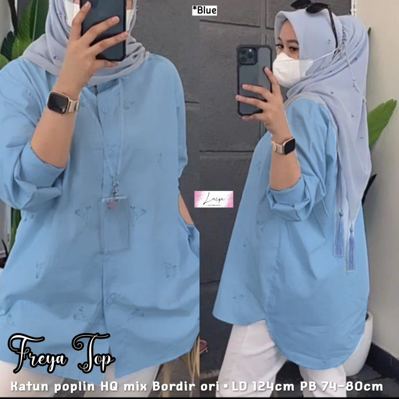 Freya Top Kemeja Blouse By Laiqa Ld 124 Cm Pb 74-80 Cm Bahan Katun Poplin Mix Bordir Bunga Premium Baju Atasan Wanita Kemeja Blus Lengan Panjang Kasual Korean Style Best Seller