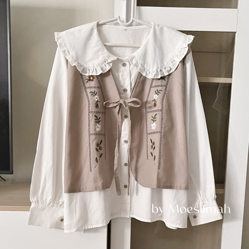 Zafanya Blouse - Atasan Wanita Bordir Rompi - Atasan Korea Style - Size 5L XXXL XXL XL L M S - Bahan Linen Rami