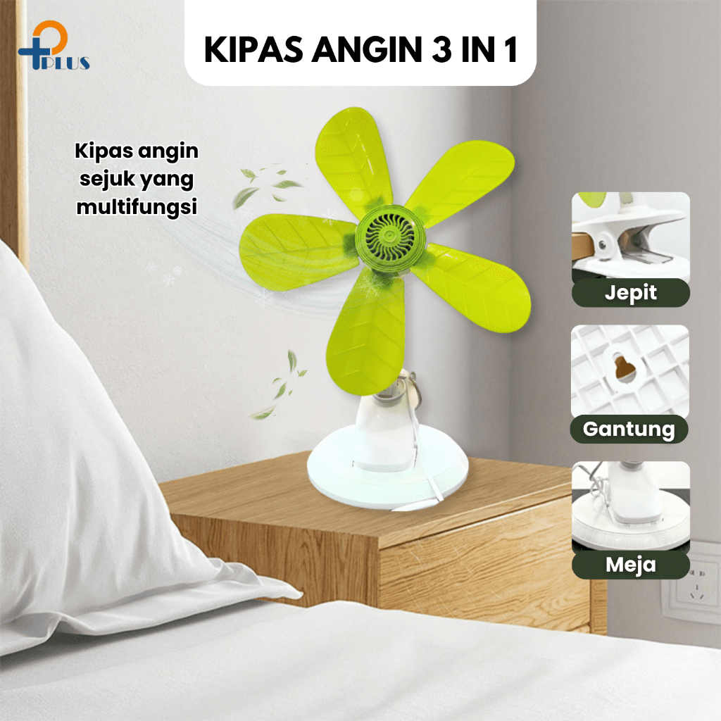 Kipas Angin Pplus Mini Fan Pplus Jepit 3In1 5 Baling 24W Dan 4 Baling 22W