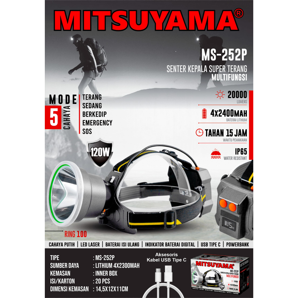 SENTER KEPALA MITSUYAMA MS-252P 120WATT BATERAI 9600MAH TAHAN 15 JAM - E POWERBANK - CHARGER USB TYPE C