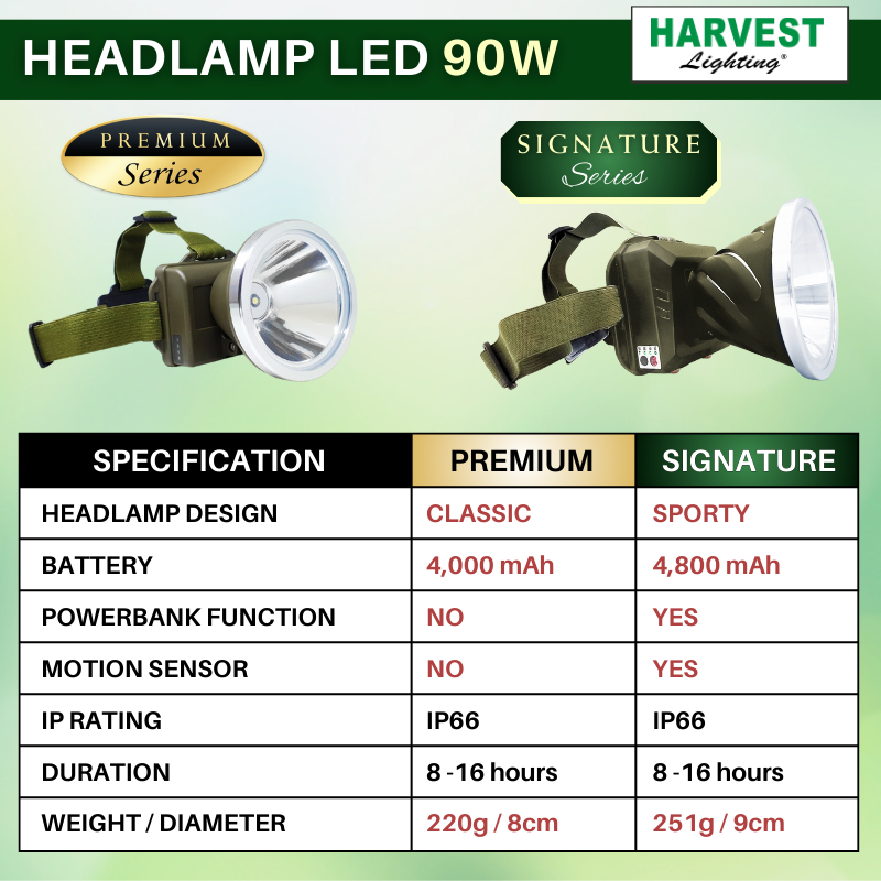 90W Headlamp HARVEST LIGHTING Senter Kepala LED PREMIUM IP66 Lampu Emergency Original Bergaransi