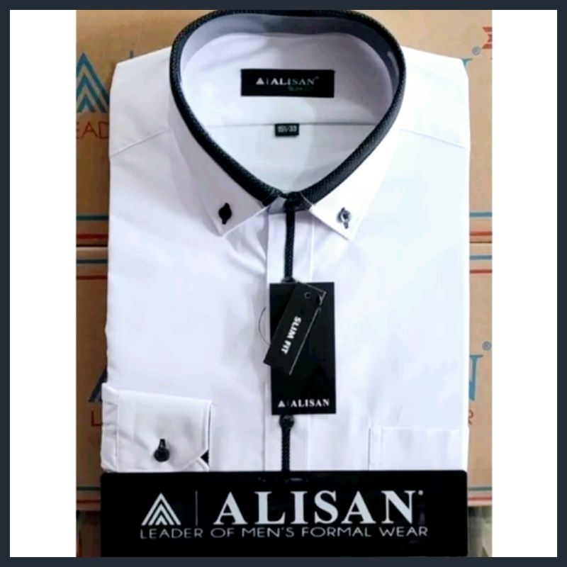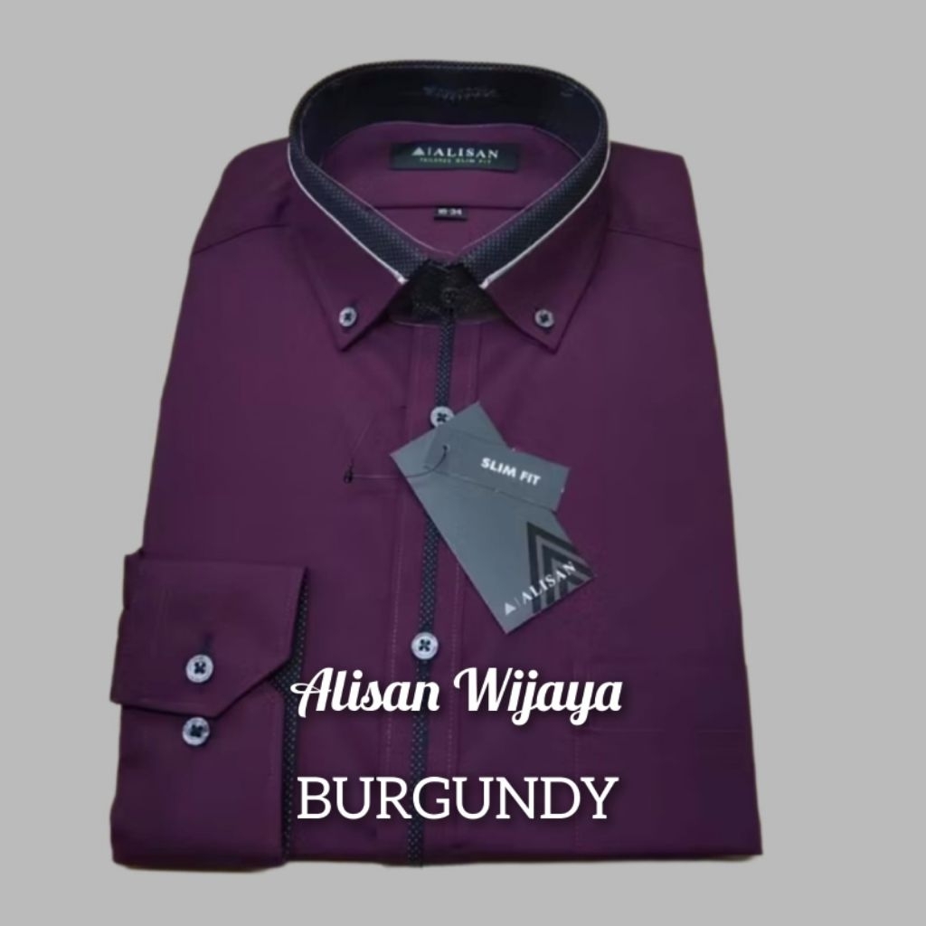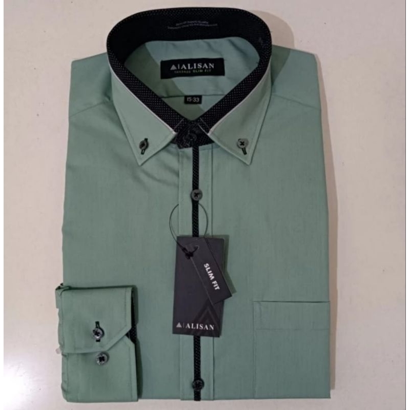 Alisan Kemeja Pria Lengan Panjang Polos Kombinasi List Slim Fit (100 PERSEN Alisan Asli Original)
