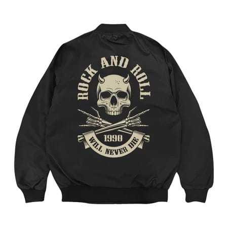 Jacket Bomber ROCK AND ROLL Jacket Distro Waterproof Anti Air Jacket Taslan Unisex Pria dan Wanita Size Lokal M L XL XXL
