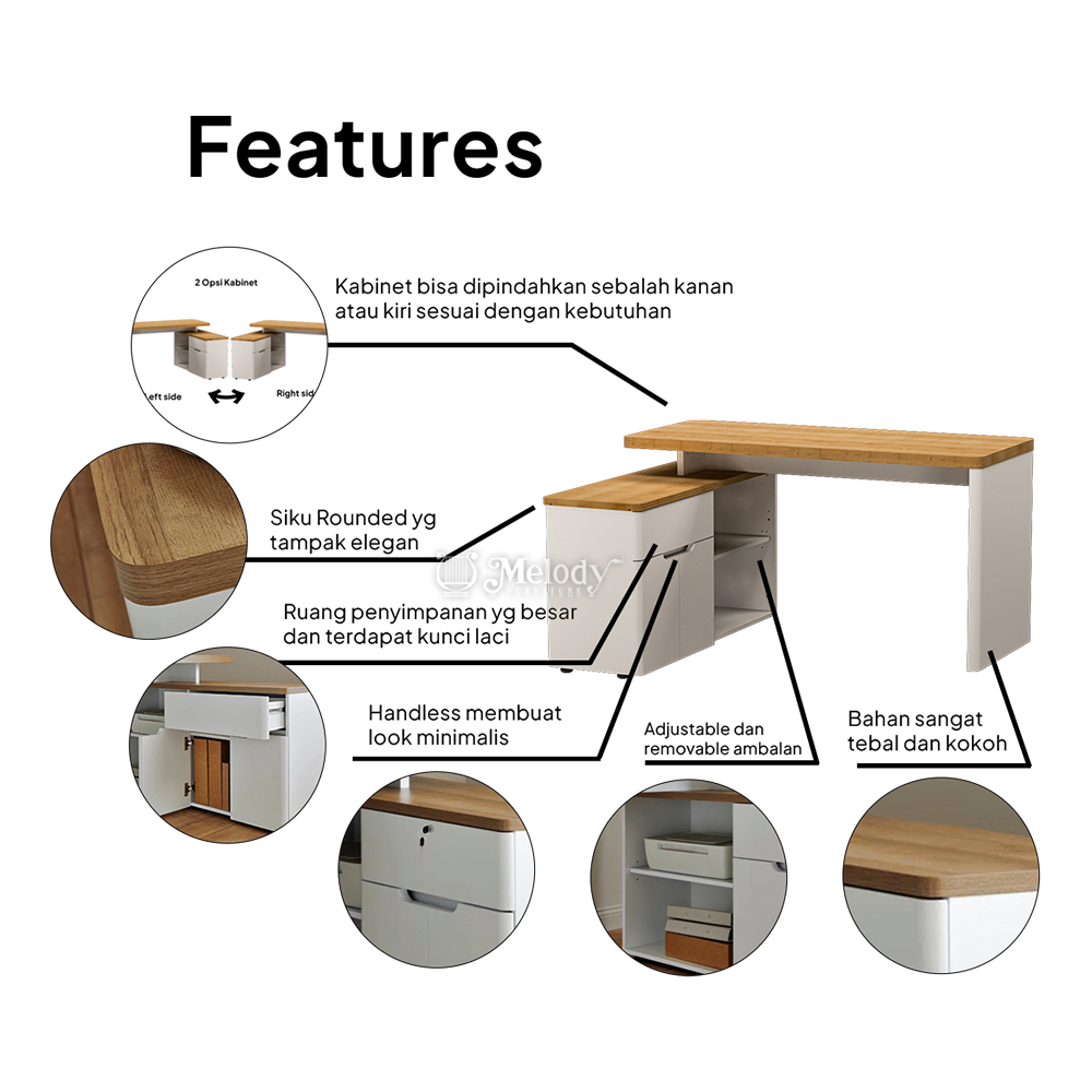 Meja Kerja Sudut Meja Belajar Kantor Tipe L Minimalis Modern - LIBRE 150 cm