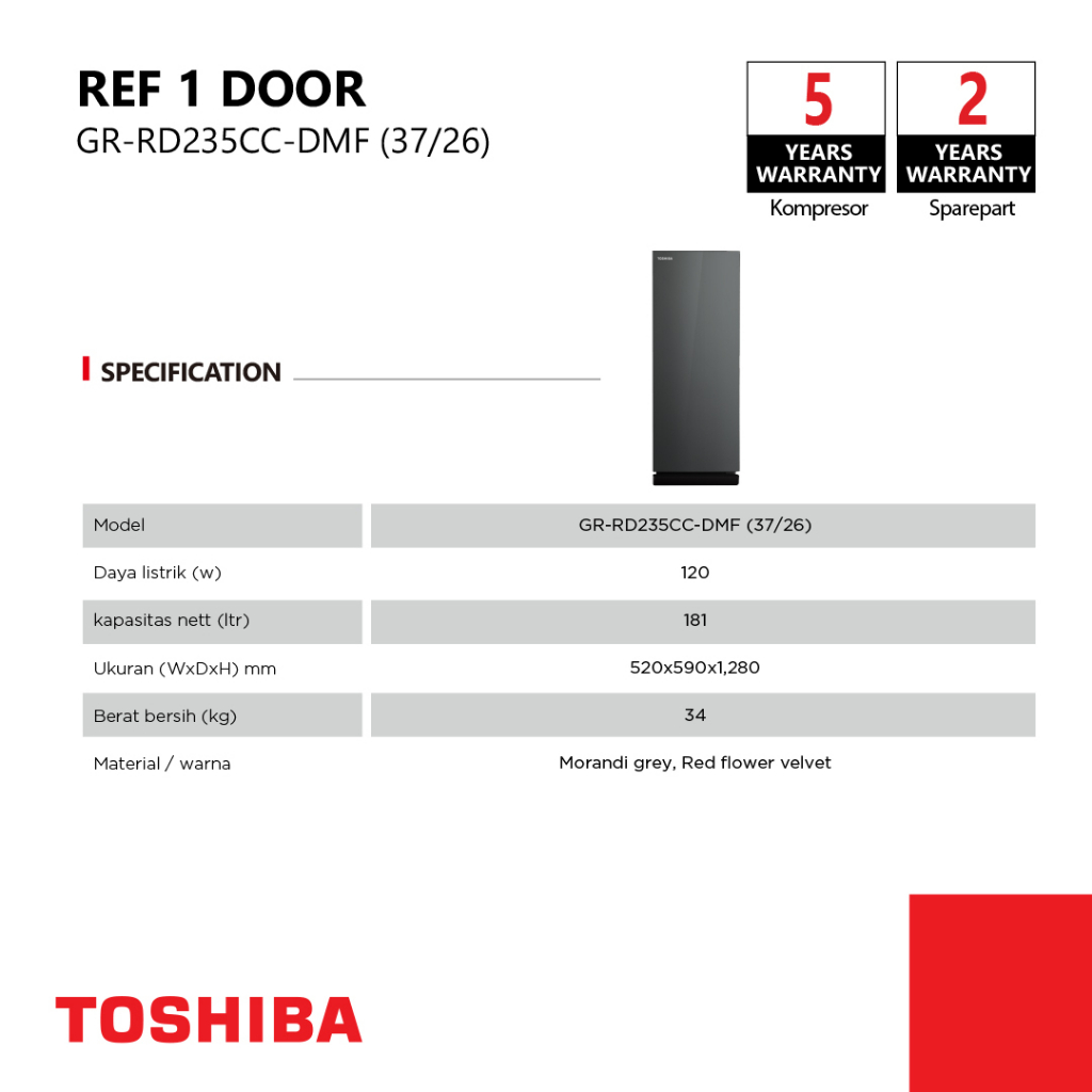 Kulkas Toshiba Kulkas Toshiba 1 Pintu Gr-Rd235Cc-Dmf 181 Liter