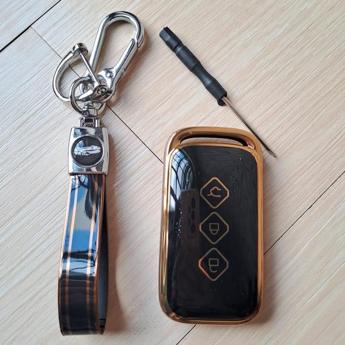 Casing Smart Keyless TPU Kelir Emas Anti Gores WULING ALVEZ Car Kunci Remot - Hitam