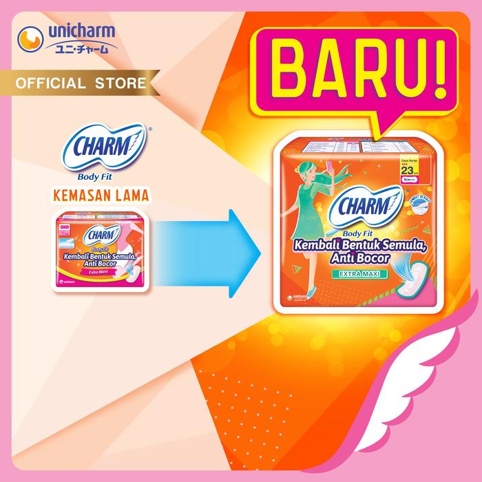 Charm Pembalut Body Fit Extra Maxi 23cm Non Wing 30 pads - 3 Packs