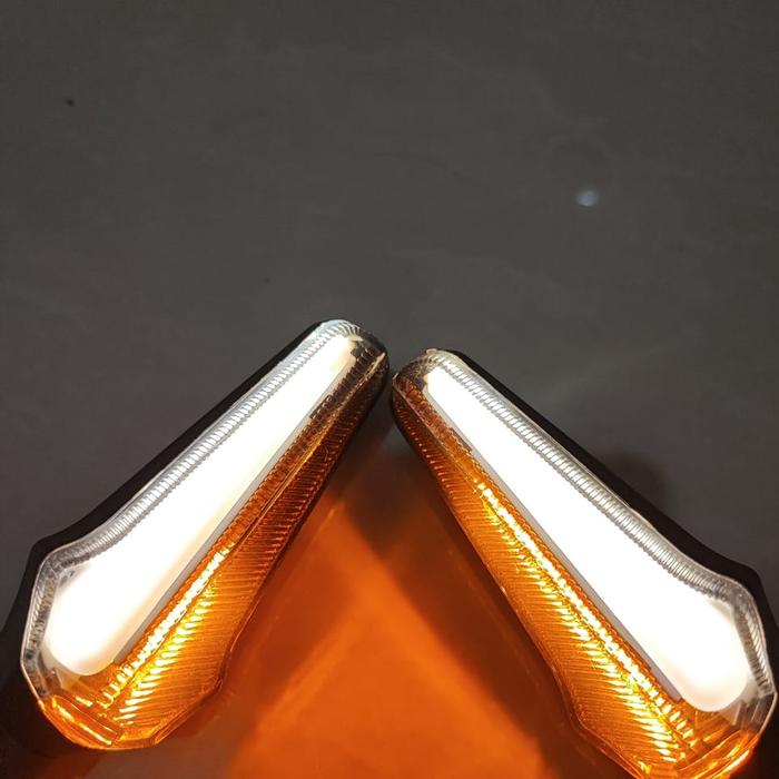 BOBLTECH Lampu Sein Motor Led Running | Flowing Dua Warna Fitur DRL | Rem motorcycle - Putih Kuning