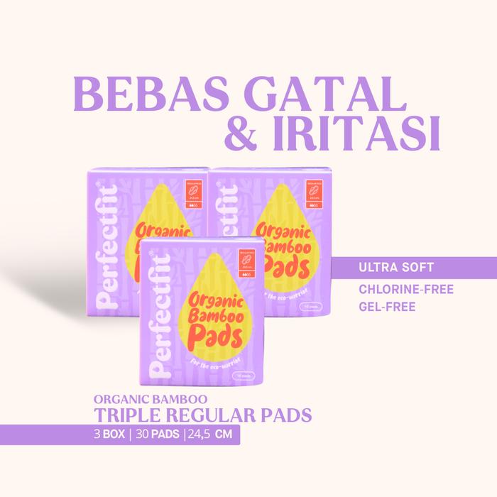 Perfectfit Organic Bamboo Pads Triple Regular 245 cm (3 Box) - Pembalut Organik Bebas Gatal Iritasi
