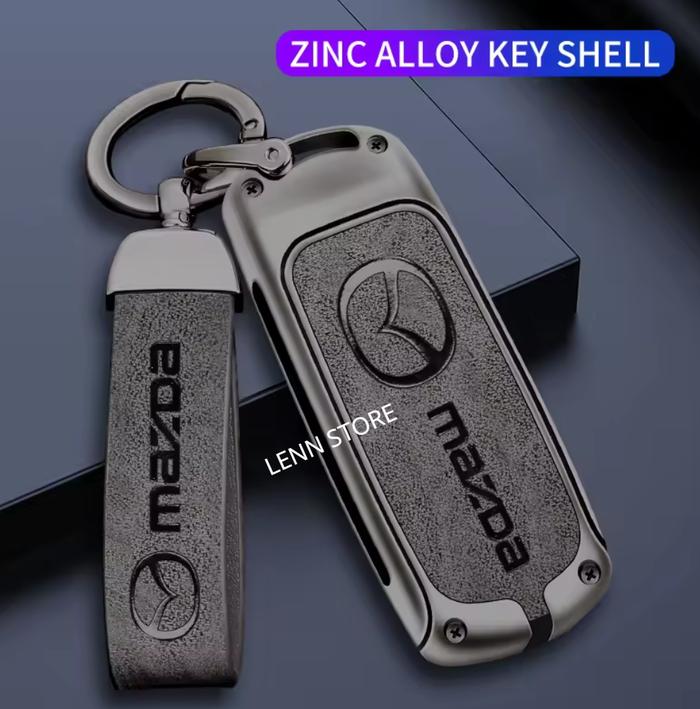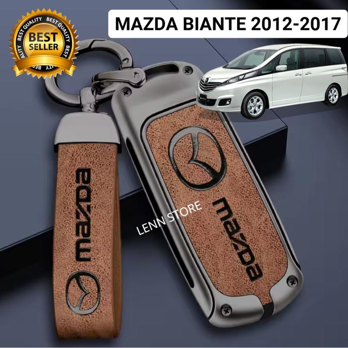 Cover Sarung Kunci Remote Kulit Logam MAZDA BIANTE 2012 2013 2014 2015 2016 2017 - Grey Cokelat