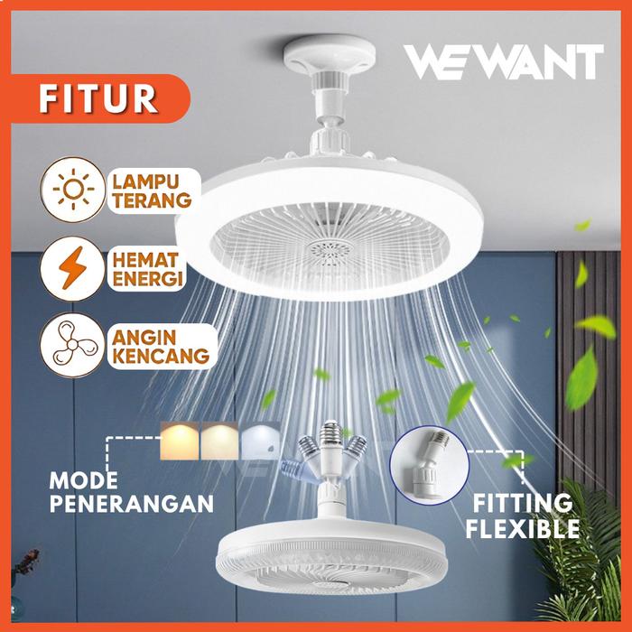 WEWANT LED Kipas Angin Plafon 2in1 Lampu Ceiling 36W Fan Remote - Reguler Kuning