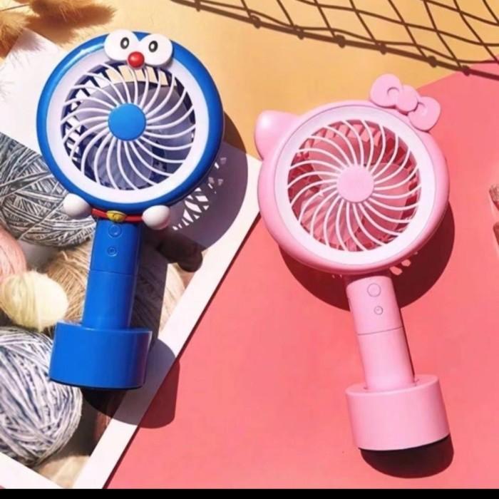 kipas angin standing portable karakter led lampu serbaguna mini fan - pink