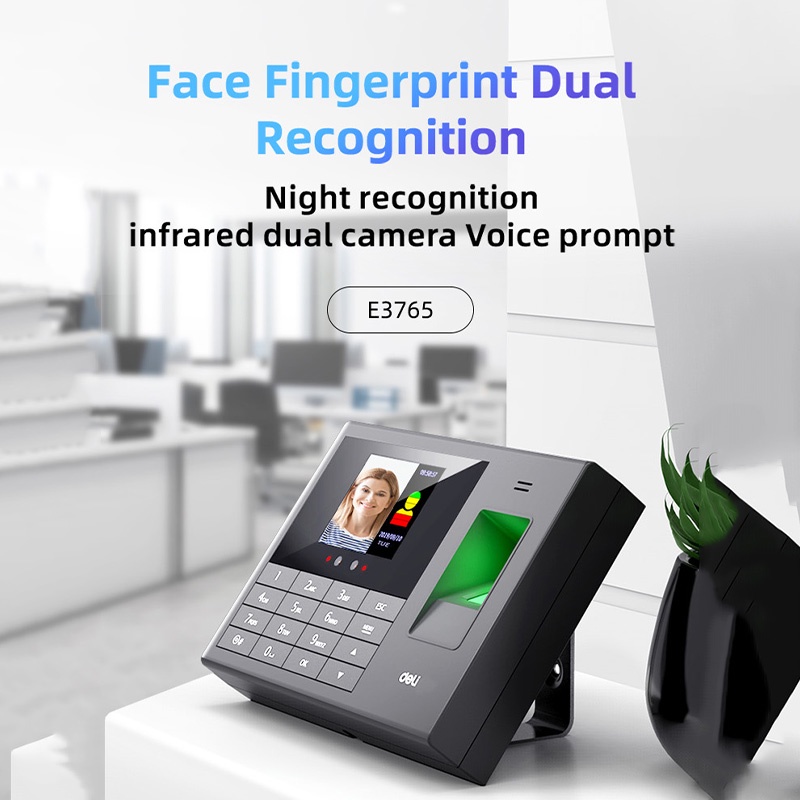 Mesin Absensi Deli Sidik Jari Deteksi Wajah 1000 Sidik Jari 200 Wajah Attendance Machine Bahasa Indonesia E3765
