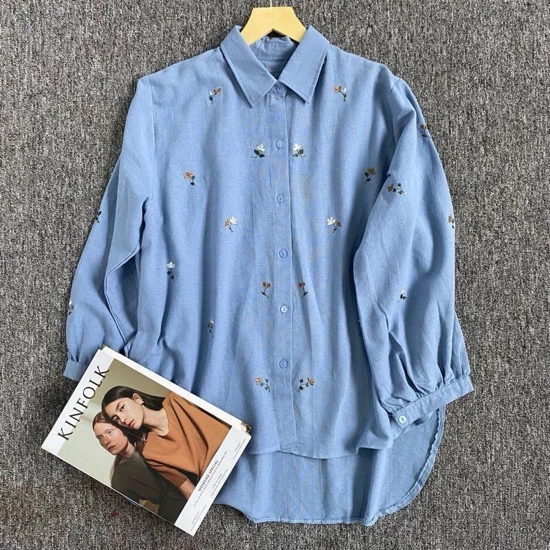 Atasan Wanita Blouse Oversize Kemeja Basic Matt Linen Rami