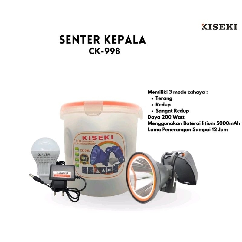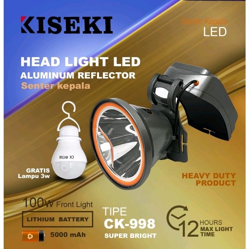 Kiseki Senter Kepala CK-998 Cahaya Putih 200W Baterai 5000mAh Tanan 20 Jam Super Terang | Headlamp Outdoor 200 Watt