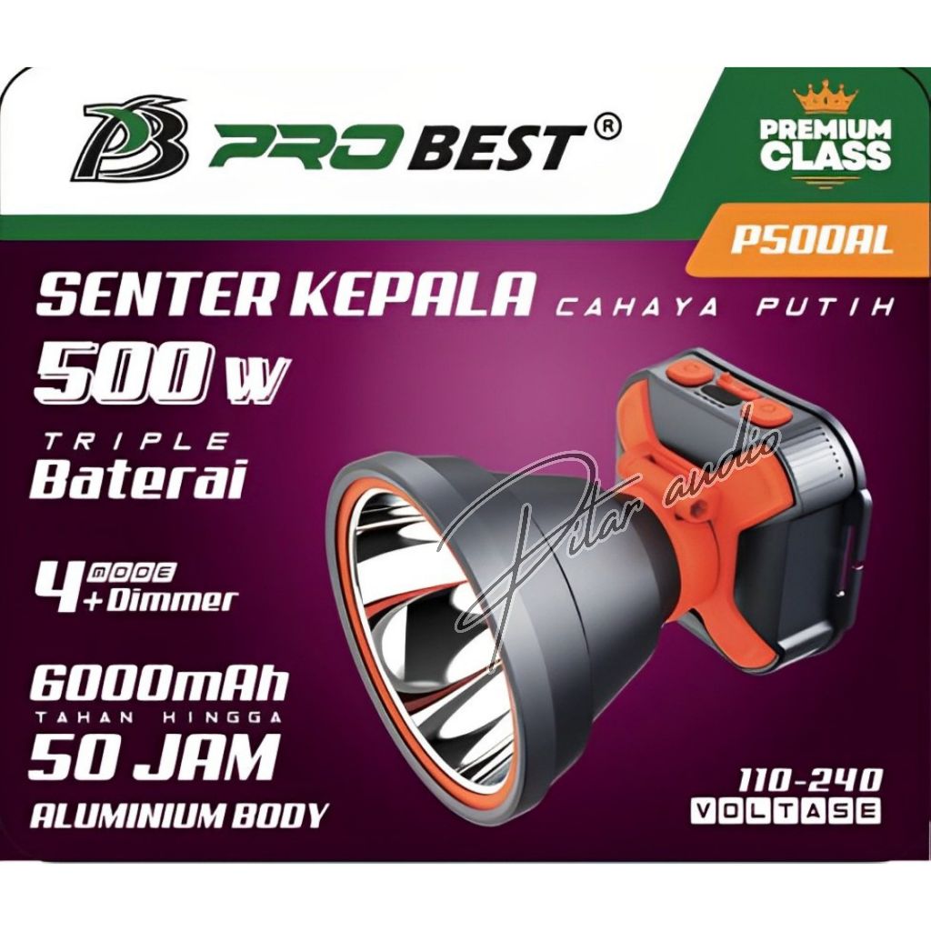 Senter Kepala 500W PROBEST P500AL | Headlamp Jumbo Diving Cahaya Putih Super Terang Outdoor Flashlight | Baterai Lithium